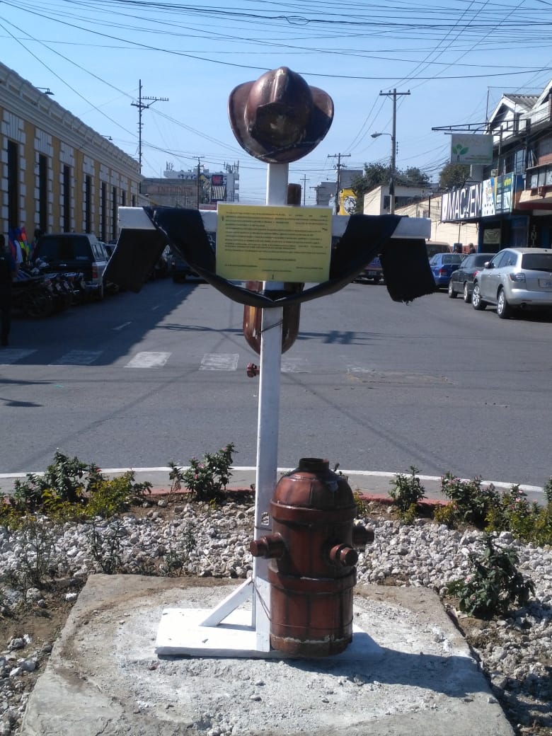 El momumento al Bombero Voluntario fue colocado en enero del 2006 y el modelo fue el fallecido oficial segundo, Ciro Camey. La estructura fue hecha en San Lucas Sacatepéquez y tiene un costo aproximado de Q60 mil.