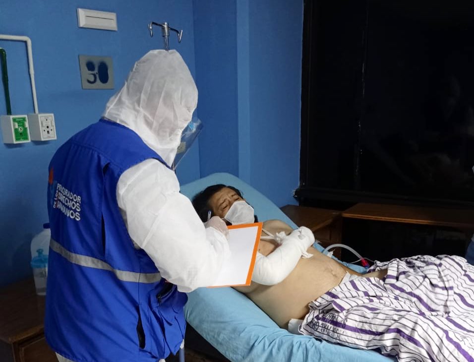Oficiales de turno de la Procuraduría de los Derechos Humanos (PDH) verifican estado de salud y atención que recibe el abogado Otto Gómez quien fue intervenido por una herida de bala en el brazo, su condición es estable según agregan.