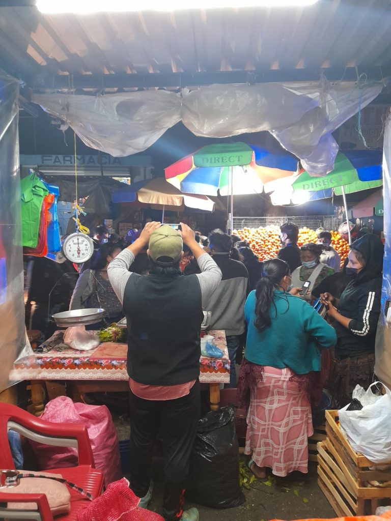 Quetzaltenango. Este 14 de diciembre por la noche, sobre la 29 avenida de la zona 3, sector del mercado Minerva, vendedores de productos de temporada intentan instalarse.