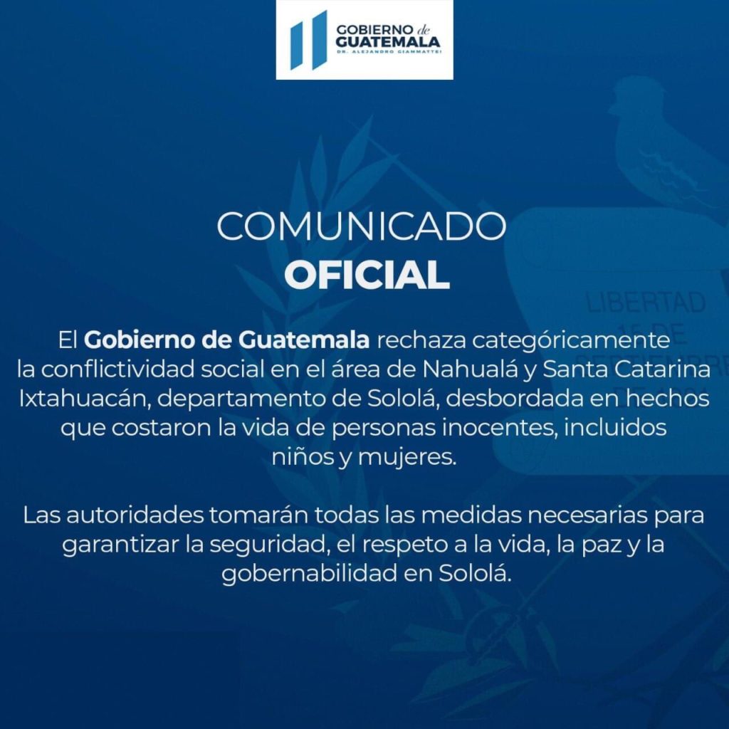 El Gobierno de Guatemala emitió un comunicado donde condena el ataque que dejó varios fallecidos, y asegura que tomará medidas para garantizar seguridad en el lugar.