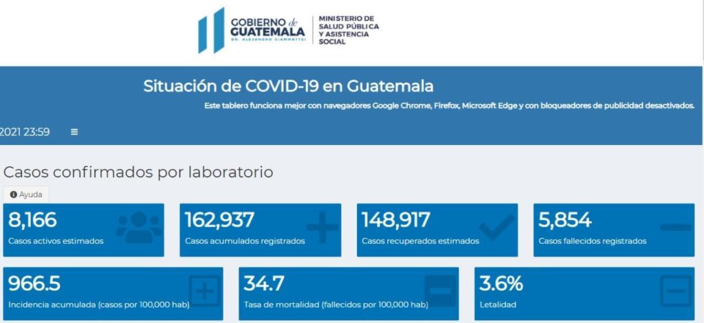 En la actualización también se incluyen 6,219 pruebas, con las que Guatemala ya reporta 817,459 tamizajes realizados desde el inicio de la emergencia, con un porcentaje de positividad del 20%.