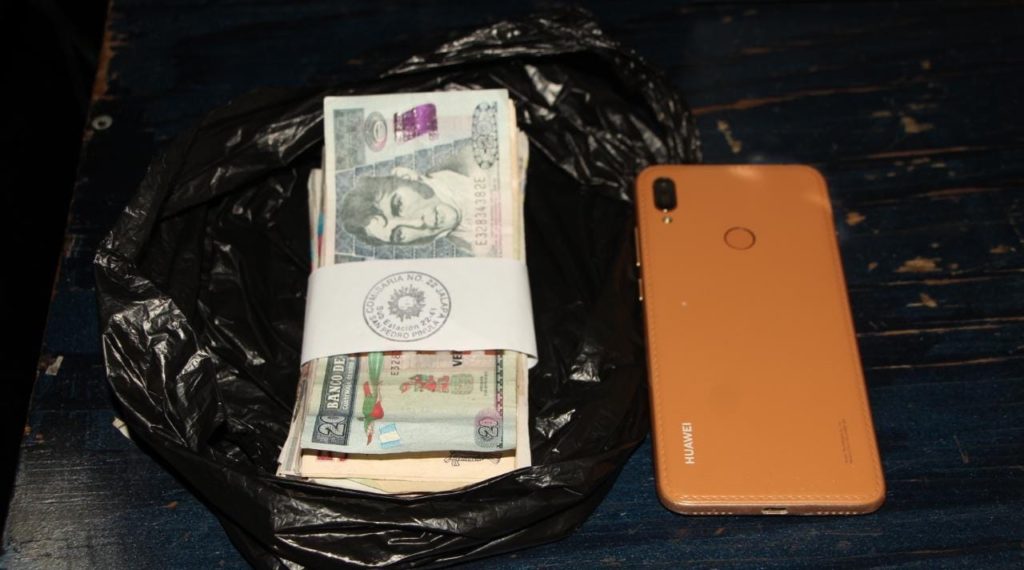 Se decomisó el paquete del supuesto dinero y un teléfono celular con el que se presume intimidaba a la víctima.