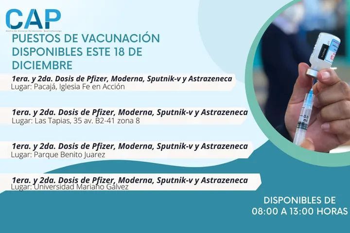 El Centro de Atención Permanente CAP, informó sobre los procesos de vacunación que continuarán durante la jornada de este 18 de noviembre.