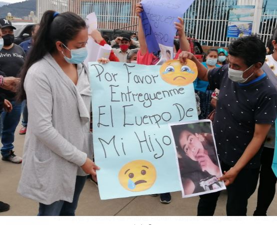 Este miércoles, familiares y vecinos de Andrés Froilán Vásquez Rodríguez, de 17 años, manifiestan, de forma pacífica, en la sede del Instituto Nacional de Ciencias Forenses (Inacif), en la zona 6 de Quetzaltenango.