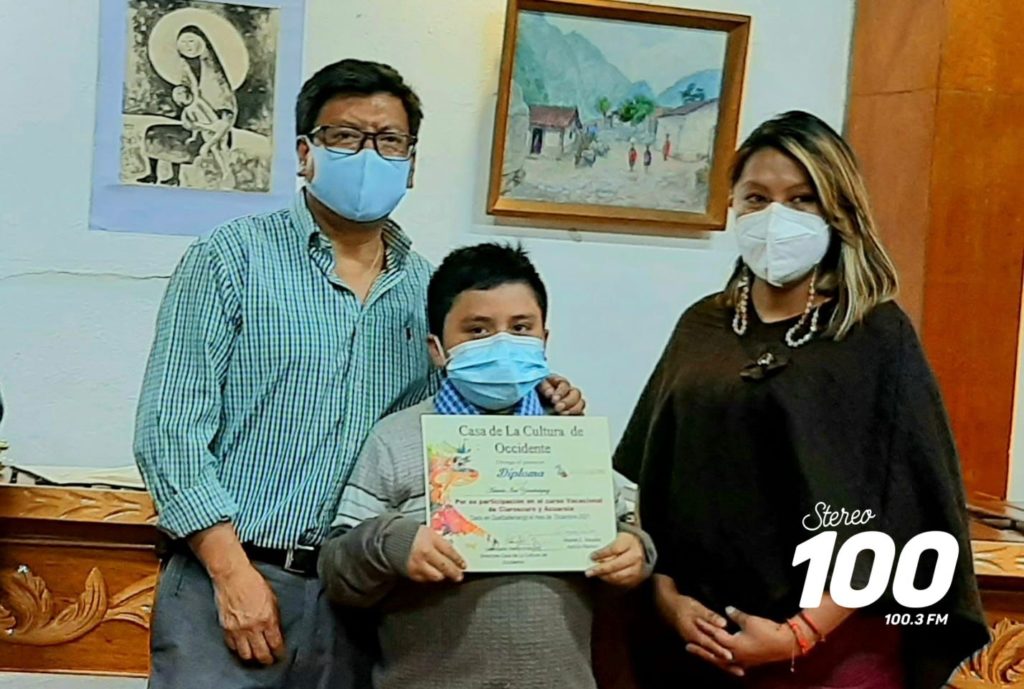 En las instalaciones de la Casa de la Cultura de Occidente, zona 1 de Quetzaltenango, entregan diplomas de participación a niños y jóvenes, quienes fueron parte del curso de vacaciones de pintura que impartió el artista quetzalteco, Marvin Vásquez.