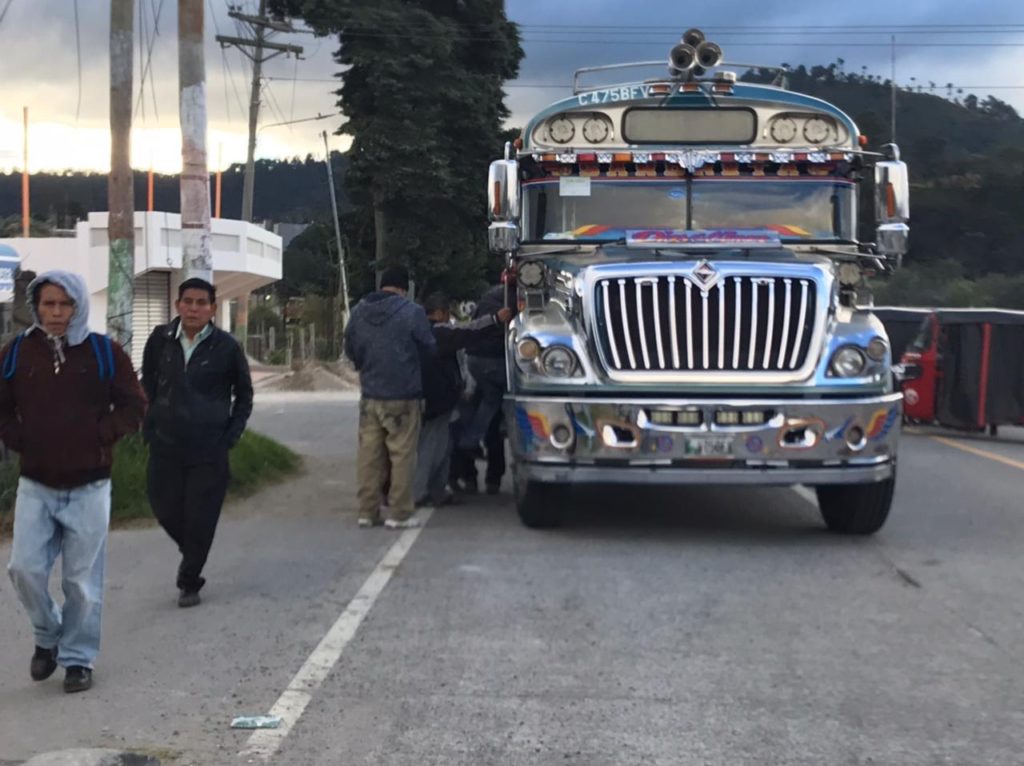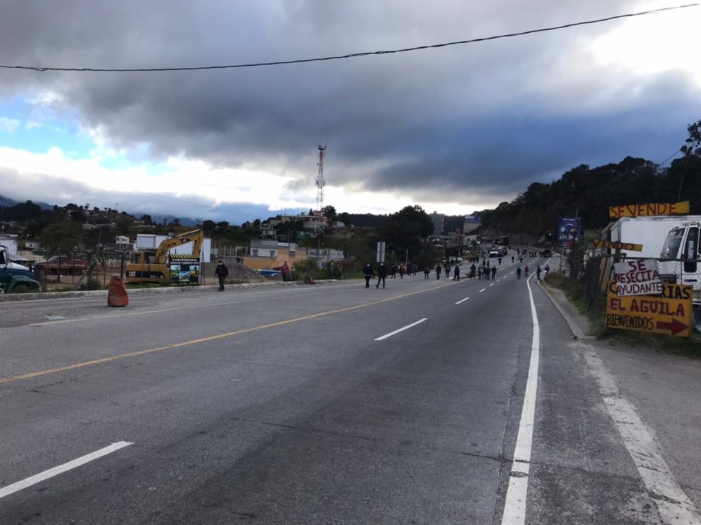 Este es el panorama en el sector que conecta de Cuatro Caminos, Totonicapán al sector de La Morería, ruta a Salcajá. Ante el bloqueo de CODECA, personas optan por transbordar buses.