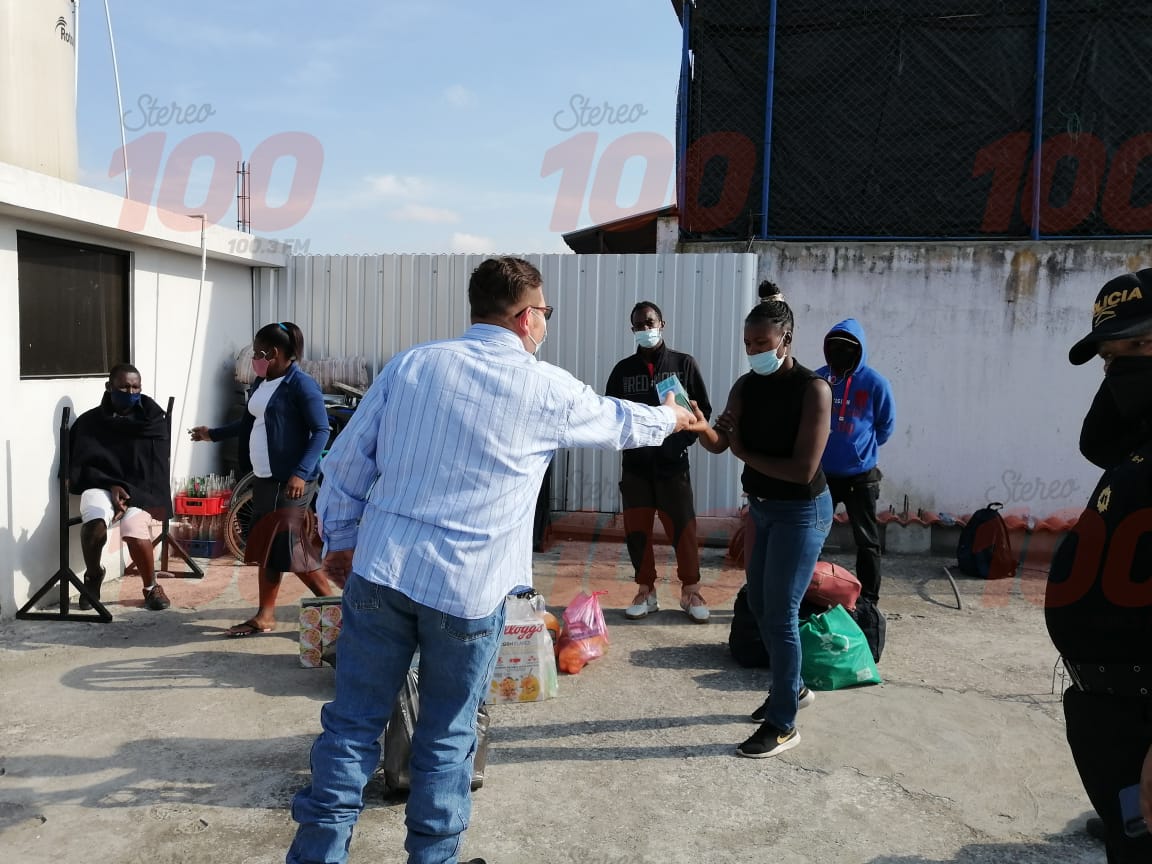 Vecinos de San Mateo apoyaron a los migrantes con alimentos y la donación de mascarillas.