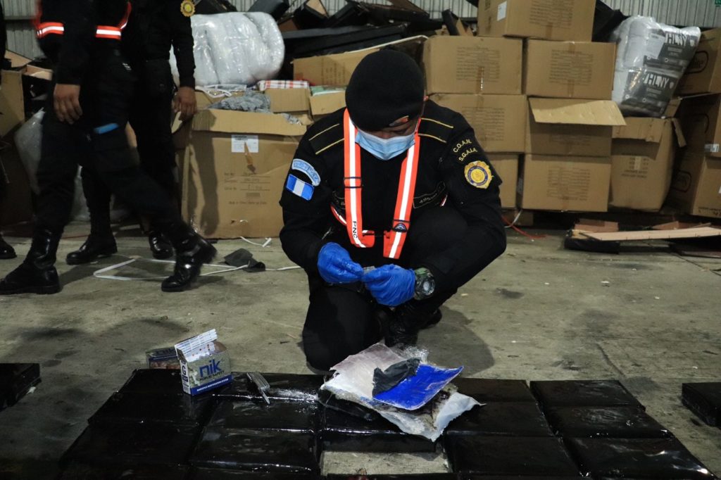 La Fiscalía de Delitos de Narcoactividad del Ministerio Público en coordinación con la Subdirección General de Análisis se Información Antinarcótica (SGAIA) de la PNC finalizaron la inspección que se hizo a dos contenedores en el Puerto Santo Tomás de Castilla, Izabal donde se localizaron 616 paquetes de Cocaína.