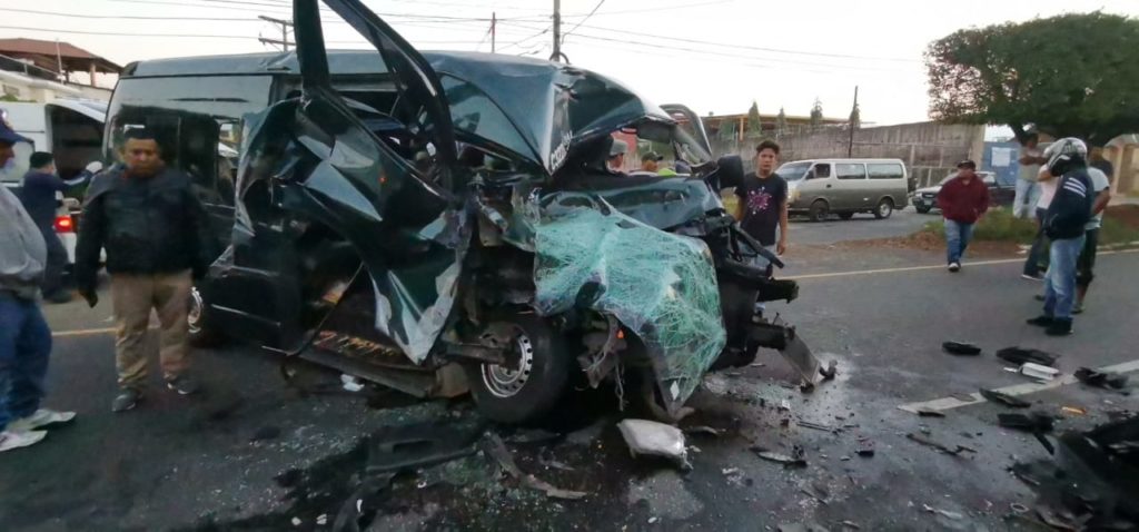 Quetzaltenango. Varias personas resultaron heridas luego de colisión de microbús del transporte extra urbano contra plataforma, en la calzada Luis Flores Asturias del municipio de Coatepeque.