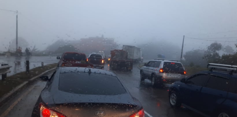 - Kilómetro 117, carretera Interamericana, (ruta CA-1 Occidente). Clima frío y ya se forman filas de vehículos en el sector.