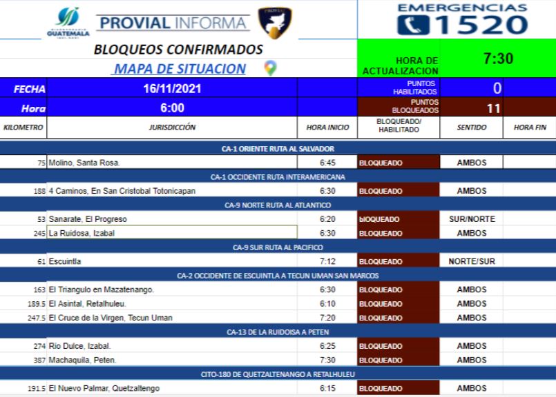 Guatemala. El país de nuevo amanece con bloqueos en carreteras, por segundo día consecutivo, manifestantes obstruyen la libre locomoción en diferentes tramos y puntos estratégicos.