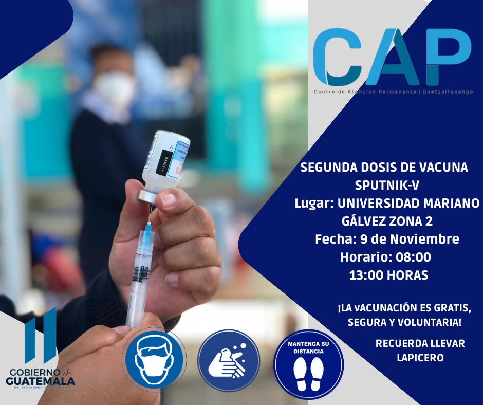 • Segunda dosis de vacuna Sputnik V, Universidad Mariano Gálvez, zona 2 de #Xela.