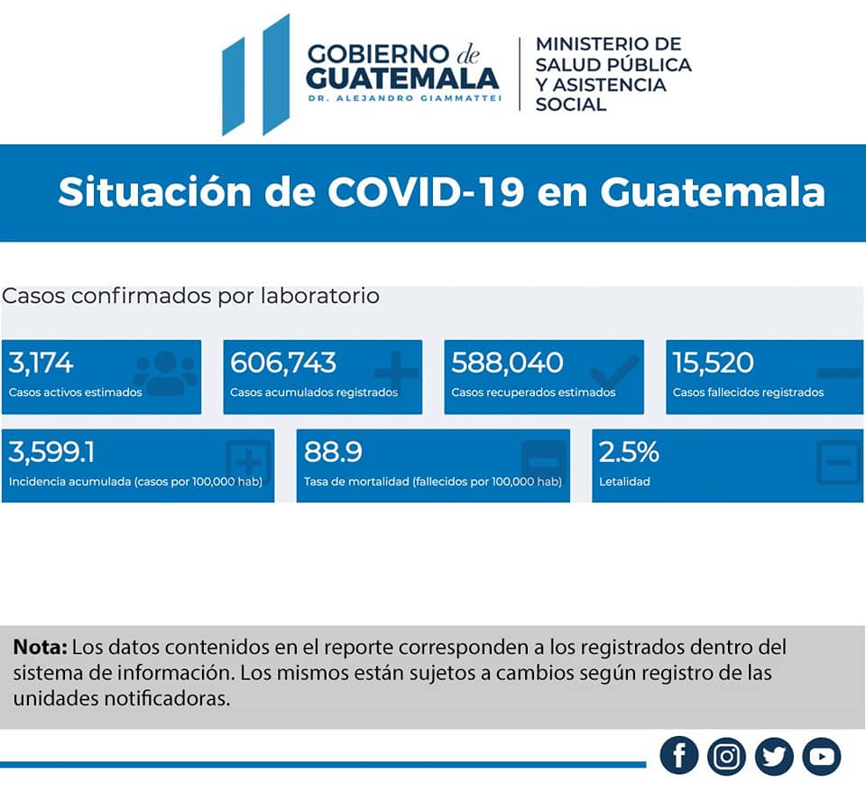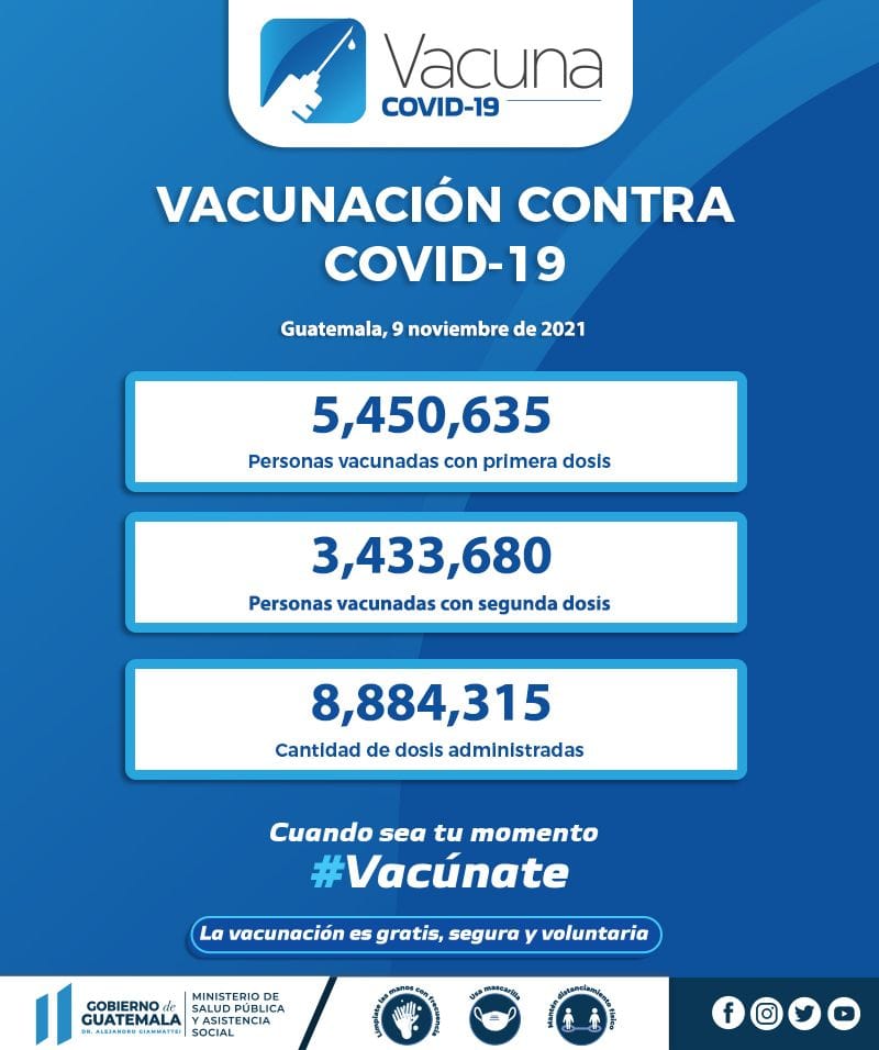 El Ministerio de Salud de Guatemala informó sobre la cantidad de dosis de vacunas contra el COVID-19, que han recibido la primera dosis y esquema completo, según el Plan de Vacunación contra el COVID-19.
