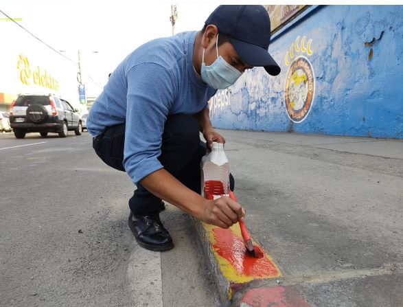 El jefe de la PMTQ, José Mendoza, informó que asignaron a elementos policiales a la 14 avenida, zona 3, para apoyar en la colocación de pintura.