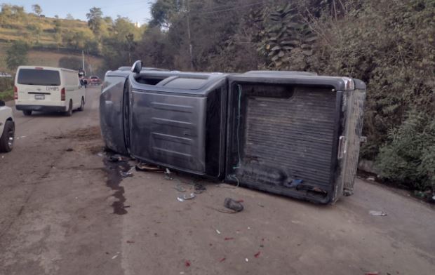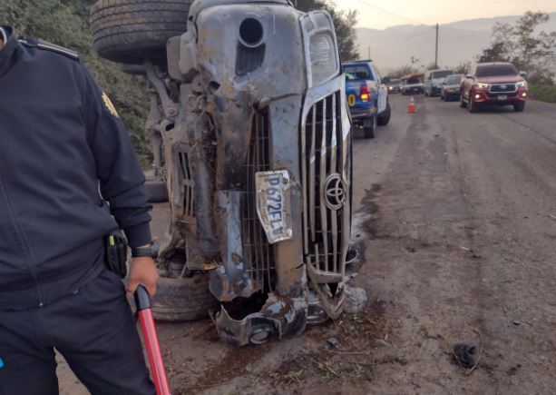Este miércoles, a las 6.10 horas, por causas que se desconocen, el picop P-672FLV volcó en el kilómetro 192.5 de la ruta Interamericana, jurisdicción de San Francisco El Alto, Totonicapán.