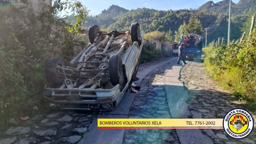 Marco Tulio Hernández de 50 años resultó herido y trasladado a un centro asistencial por Bomberos Voluntarios de Quetzaltenango, tras volcar el vehículo donde viajaba ruta al cerro Quemado o conocido como La Muela. Según el informe de socorristas presenta posible fractura en el antebrazo y mano derecha.