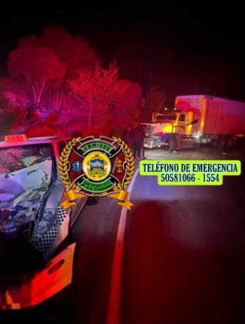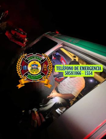 Bomberos Municipales Departamentales, abordo de la unidad AD-5, acudieron a brindarle primeros auxilios a tres personas, quienes iban en un vehículo liviano y uno pesado.