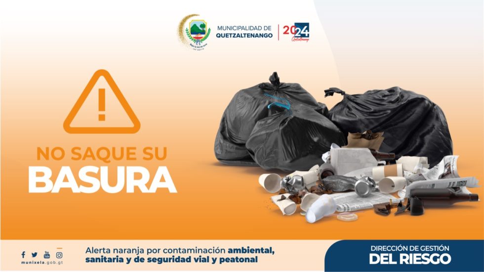 Con información de Ruben Jocol. La Municipalidad de Quetzaltenango, oficializa alerta naranja por contaminación ambiental en el municipio, provocada por manifestaciones en el ingreso del Valle de Palajunoj. Son aproximadamente 328 toneladas de desechos sólidos que no han sido trasladados al botadero municipal. El 1 de marzo, de acuerdo con la información brindada por la … Sigue leyendo Alerta Naranja por contaminación ambiental en Xela