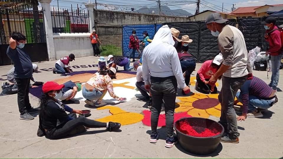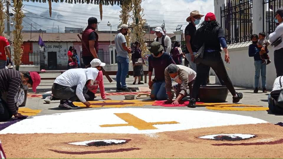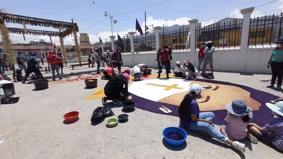 De 6 a 7 horas dura el proceso de elaboración de la alfombra y 10 días de planificación. Los integrantes piden a la población que mantengan la fe durante la pandemia.
