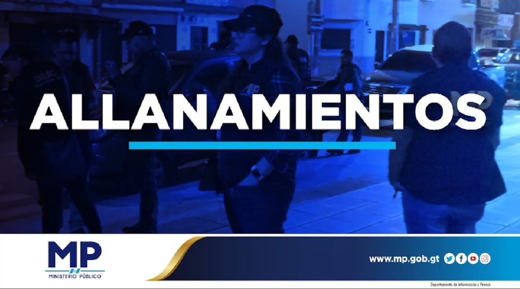 La Unidad de Bancos de la Fiscalía contra el Crimen Organizado del Ministerio Público (MP) desarrolla tres diligencias de allanamiento en inmuebles ubicados en las zona 1 y 8 de Mixco, y zona 21 de la ciudad capital.