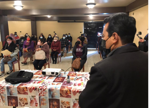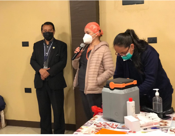Trabajadores de restaurantes en Totonicapán reciben la dosis de refuerzo de la vacuna contra el COVID-19.