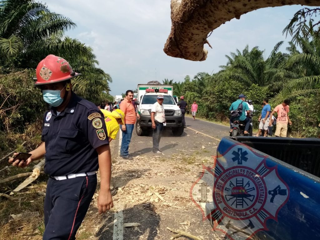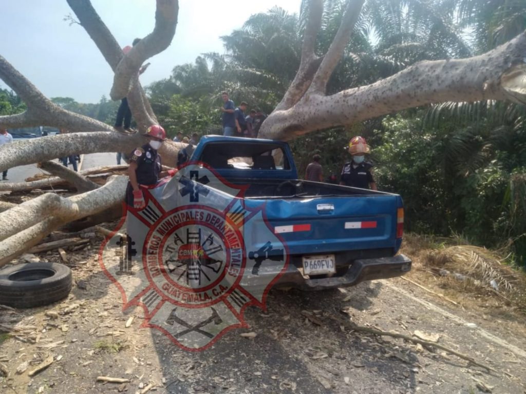 Bomberos Municipales Departamentales brindaron atención prehospitalaria a un hombre, una mujer y una niña de 8 meses, quienes resultaron con multiples heridas tras caer un árbol cuando circulaban a bordo de un picop a la altura del kilometro 249 sector Monte Cristo del Municipio de Coatepeque, Quetzaltenango en la ruta que conecta hacia La Blanca San Marcos.