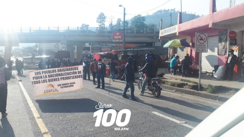 A las 07.00 horas de este martes 26 de abril fue bloqueado el paso en el sector de Cuatro Caminos, San Cristóbal Totonicapán.