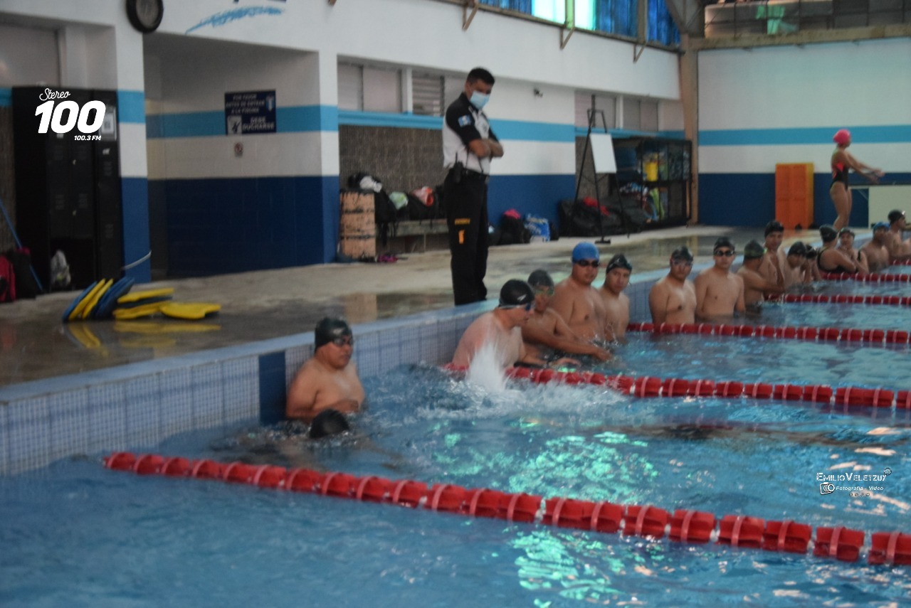 Como parte de la preparación para los 45 aspirantes a Bomberos Voluntarios, en la piscina del Complejo Deportivo, en la zona 3 de Quetzaltenango, se imparte el curso de natación.