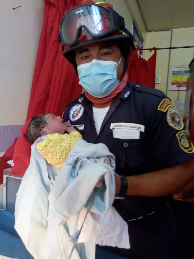 Una bebé fue recibida en la ambulancia RD-99 por elementos de la estación 113 de Bomberos Municipales Departamentales Santa Lucía Utatlán, ellos atiendieron el parto a 3 cuadras del Hospital Departamental de Sololá.