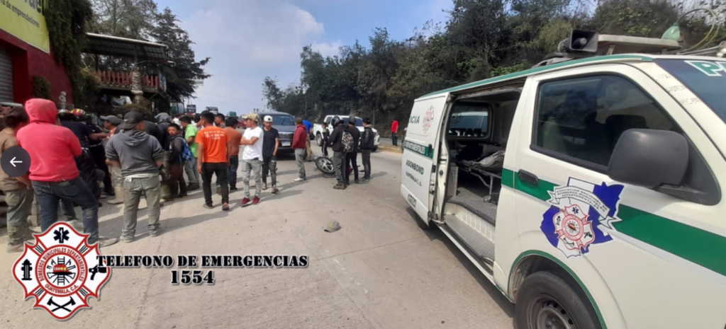 Un accidente de tránsito se produce a la altura del km 68.5 de la Ruta Interamericana Occidente, elementos de Bomberos Municipales Departamentales atienden a dos personas que se conducían en una motocicleta, tras ser estabilizadas son trasladadas a la emergencia del Hospital Nacional de Chimaltenango.