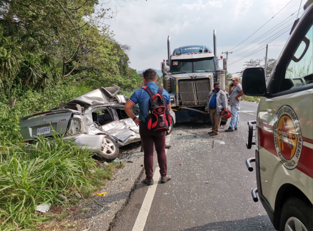 El piloto presenta politraumatismo, Bomberos Voluntarios lo llevan al Instituto Guatemalteco de Seguridad Social (IGSS) de la localidad, también los socorristas atienden al conductor del tráiler en el lugar.