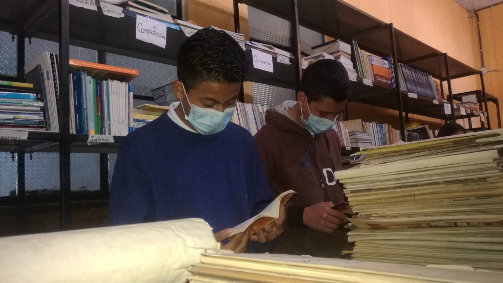 Autoridades del Centro Intercultural y Deportivo de Quetzaltenango (CIDEQ) y practicantes del Centro Ecuménico de Integración Pastoral (Ceipa), realizan la sistematización de libros que fueron donados por vecinos quetzaltecos durante 2021.