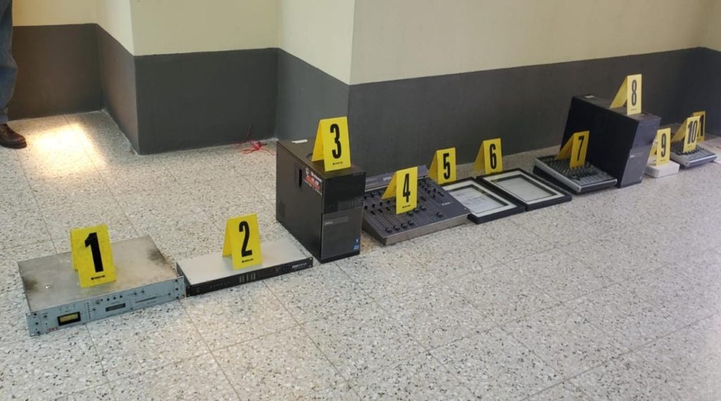 Mientras en las otras diligencias, se decomisaron tres consolas de audio, tres CPU, cuatro transmisores, un procesador de audio, un compresor de audio, dos antenas emisoras de señal, y documentos; diligencias que fueron realizadas en seguimiento a denuncias sobre varias radios piratas que funcionan en ese lugar utilizando frecuencias de emisoras radiales registradas legalmente.