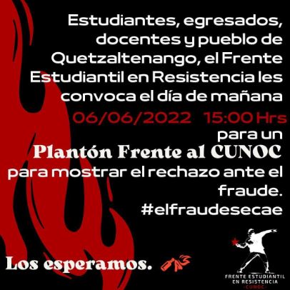 De acuerdo a la información publicada en redes sociales, el plantón está planificado para este lunes, a las 15 horas, frente al Centro Universitario de Occidente (Cunoc) de Quetzaltenango.
