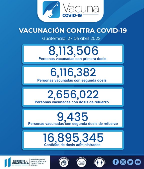 Hasta el 27 de abril, menos de 3 millones de guatemaltecos han recibido la tercera dosis de vacuna contra el COVID-19 y 3 millones de vacunas se han vencido.