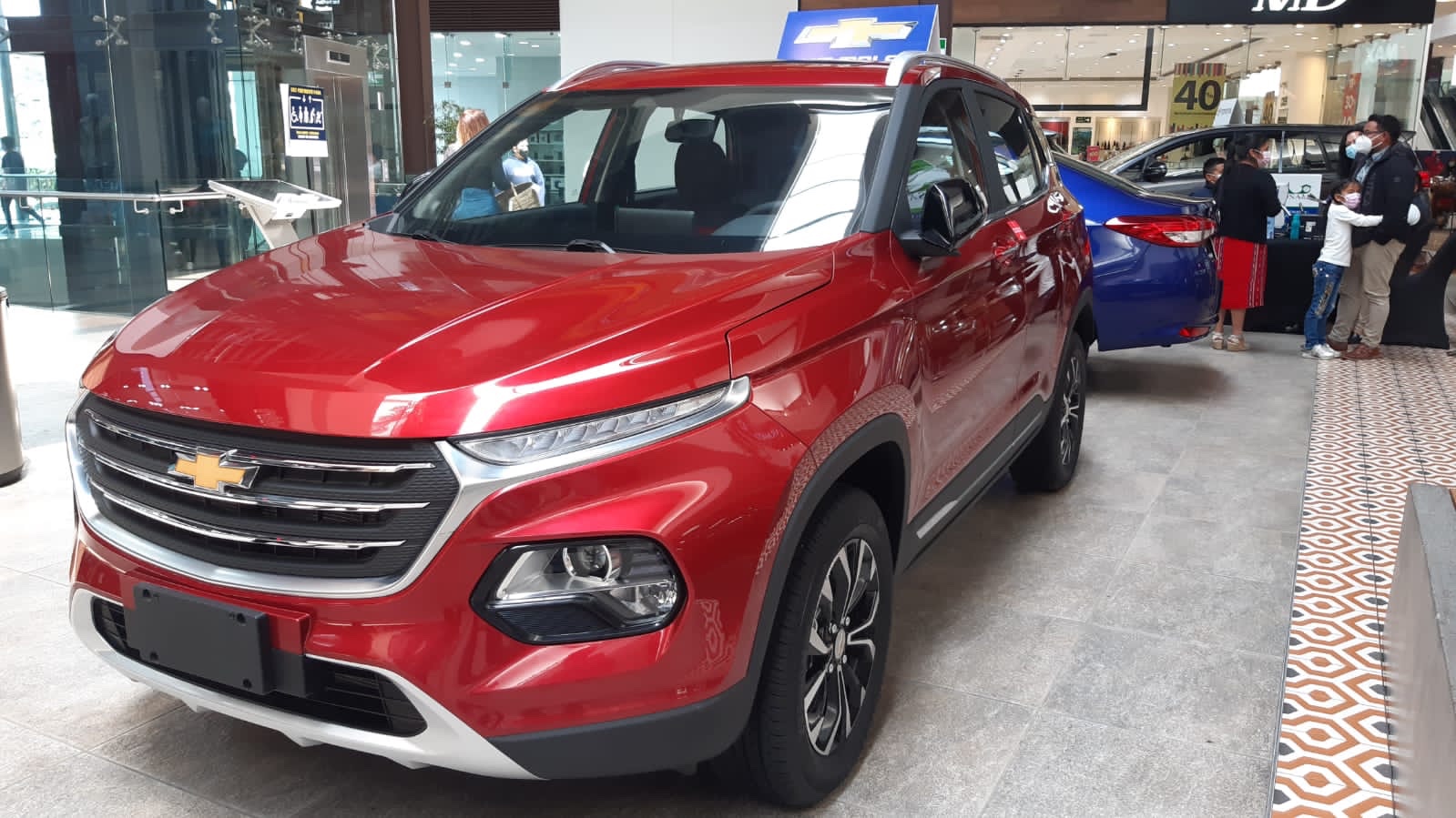 Hay vehículos tipo camioneta, sedán y familiares. Varias personas acuden a la actividad para conocer los planes de pago con la tasa de interés más baja del mercado.