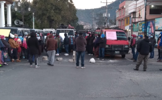 Este lunes, transportistas de microbuses, taxis, mototaxis y transporte pesado bloquean varios puntos en Totonicapán.