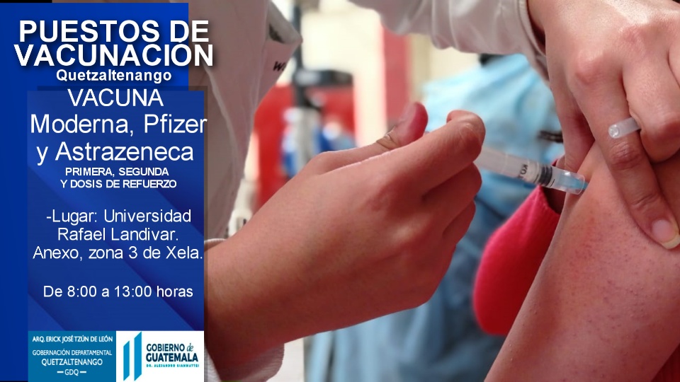 Las autoridades de salud en Quetzaltenango, informaron a través sobre cuáles serán los puestos de vacunación habilitados para este lunes 10 de enero de 2022. Serán dos puestos habilitados, en la zona 3 y 1 de la cabecera municipal.