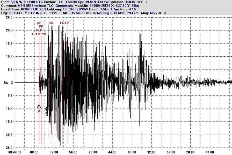 El miércoles 4 de febrero de 1976, ocurrió un terremoto en Guatemala, fue un sismo de magnitud de 7.5, a las 03:01:43 hora local (09:01:43 UTC).