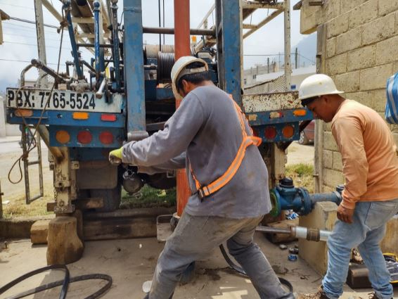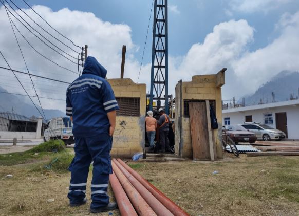 Este lunes, personal de la Empresa Municipal Aguas de Xelajú (EMAX) desarrolla trabajos de mantenimiento y limpieza en el pozo mecánico de agua en el cantón Llanos del Pinal, sector 1, Quetzaltenango.