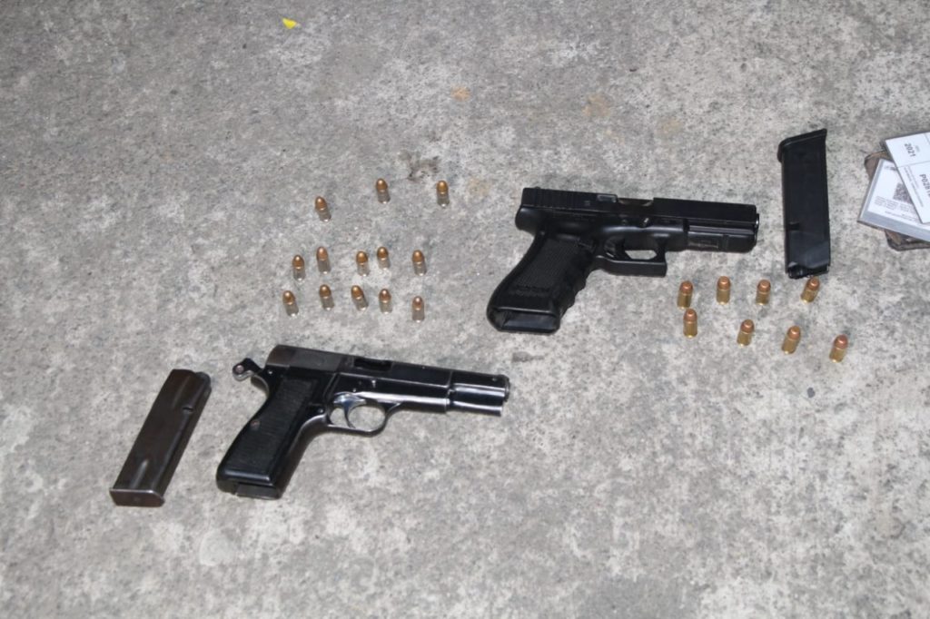Los sorprendieron flagrantemente en lugar a bordo del automóvil P-281DNH, marca Volkswagen de color verde. Trasladaban dos armas de fuego tipo pistola, de manera ilegal