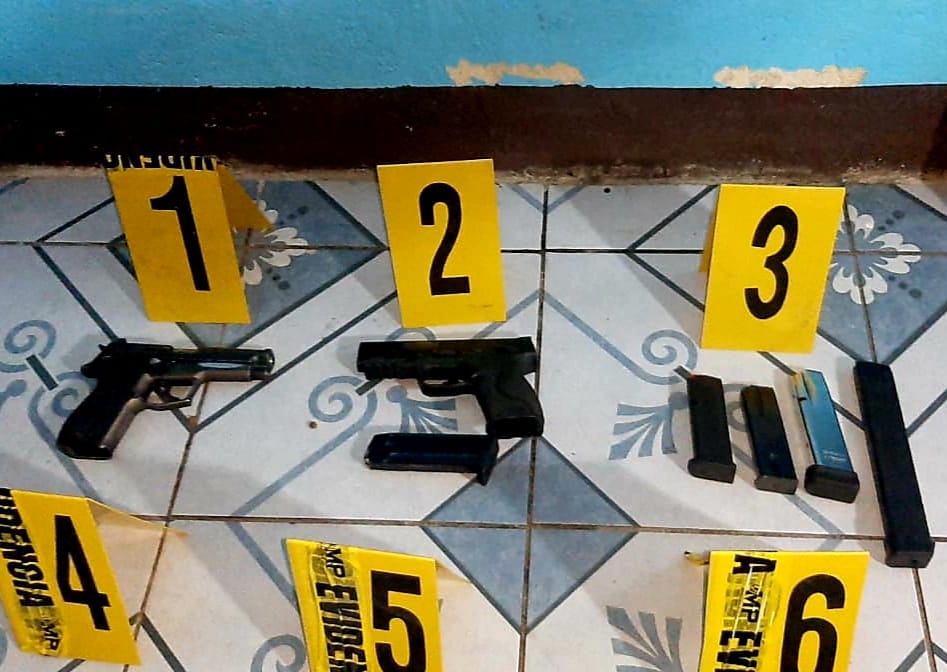 Investigadores de la DEIC, delegación de Chimaltenango y el Ministerio Público (MP) realizan un allanamiento en Ciudad Vieja, Sacatepéquez, hasta el momento se han localizado dos armas de fuego.