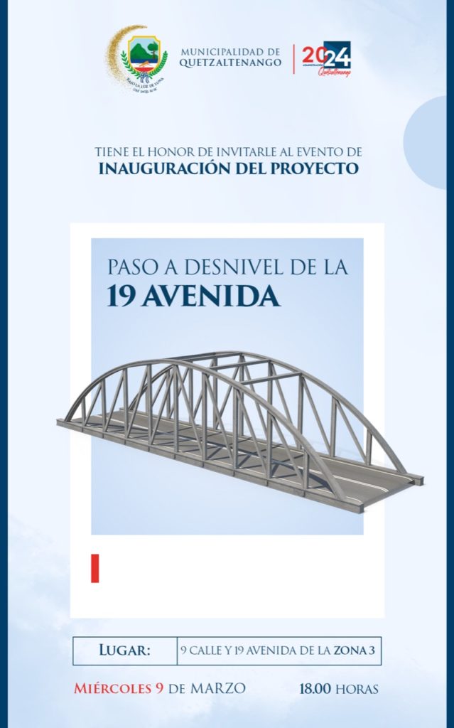 Esta noche se realiza la inauguración del puente vehicular ubicado en la 9a. Calle y 19 avenida de la zona 3 de la ciudad de Quetzaltenango.