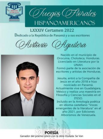 En la rama de poesía ganó la obra Se van, de Pedro Antonio Aguilera Flores, originario de Honduras.