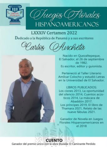 En la rama de cuento el ganador es Carlos Noé Ancheta Vásquez, originario de El Salvador, con la obra El caminante perdido.