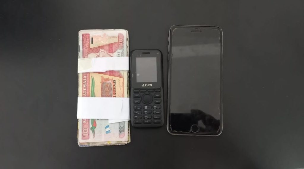 El presunto extorsionista, según detalla la PNC, mediante llamadas presuntamente amenazaba a propietario de un negocio en Quetzaltenango. Al ser neutralizado se le incautó el supuesto paquete y un teléfono celular.
