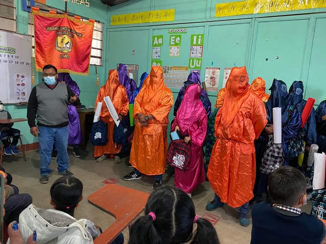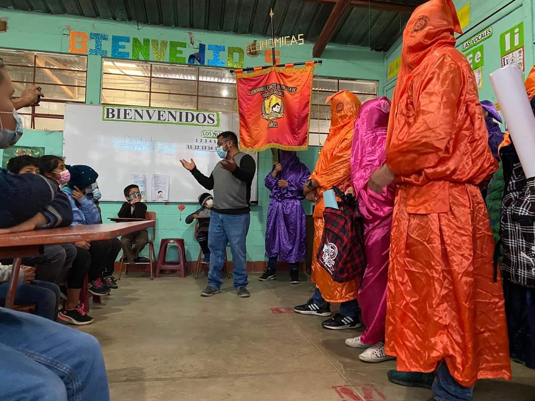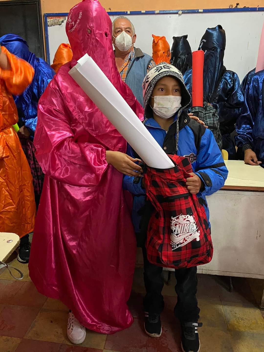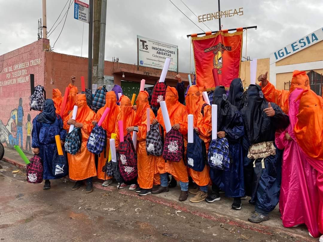 Integrantes del Comité de Huelga de Ciencias Económicas del Cunoc este viernes de Dolores informaron, que lugar de participar en desfile bufo, salieron a donar 50 mochilas con útililes escolares, material didáctico y recipientes para la refacción, a niños y niñas de la Escuela de Pacajá, zona 10 de Xela.
