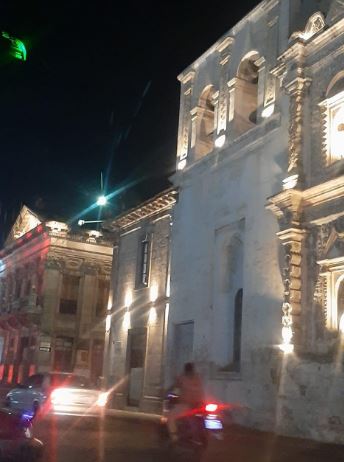 La Municipalidad de Quetzaltenango repara el sistema eléctrico para que se ilumine la antigua fachada de la Catedral del Espíritu Santo, zona 1 de Xela.