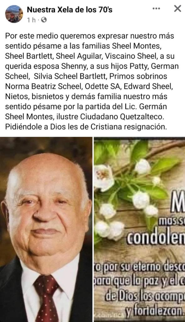 Familiares y amigos lamentan la muerte del ciudadano distinguido y exalcalde de Quetzaltenango entre 1978 y 1982, German Scheel Montes.