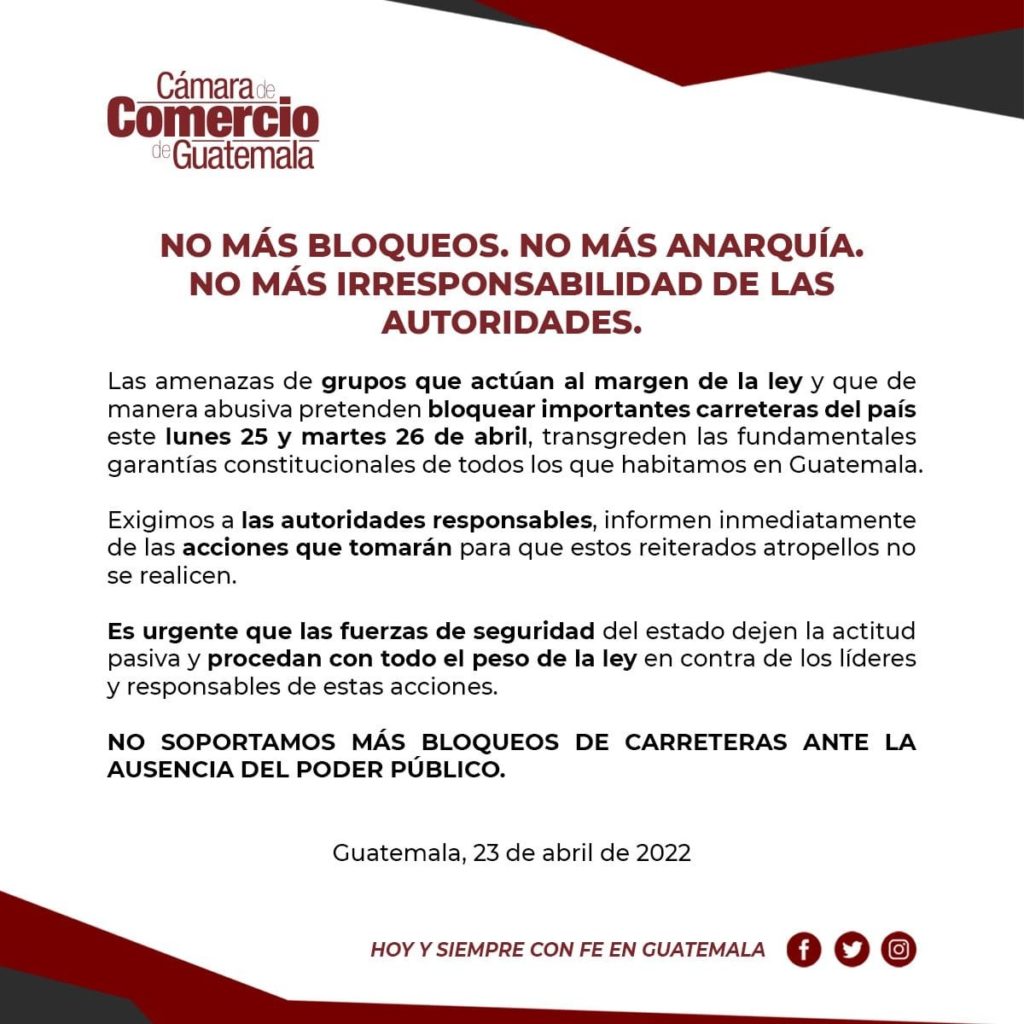“Exigimos a las autoridades responsables, informen inmediatamente de las acciones que tomarán para que estos reiterados atropellos no se realicen”, detalla del documento de la Cámara de Comercio.